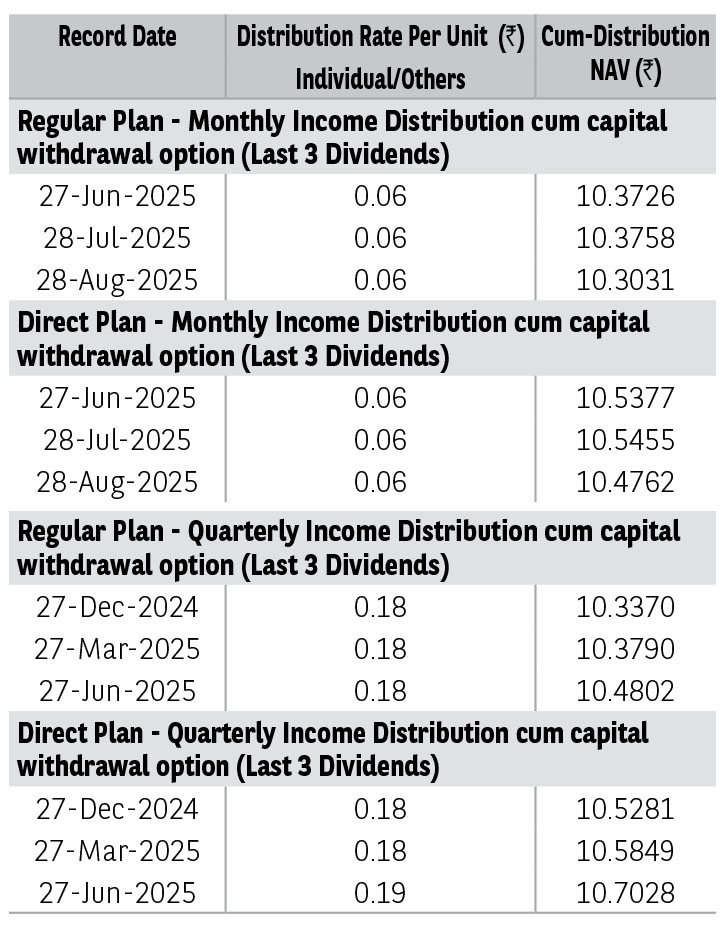 | Regular Plan - Quarterly IDCW Option | : ₹ 10.3472 |