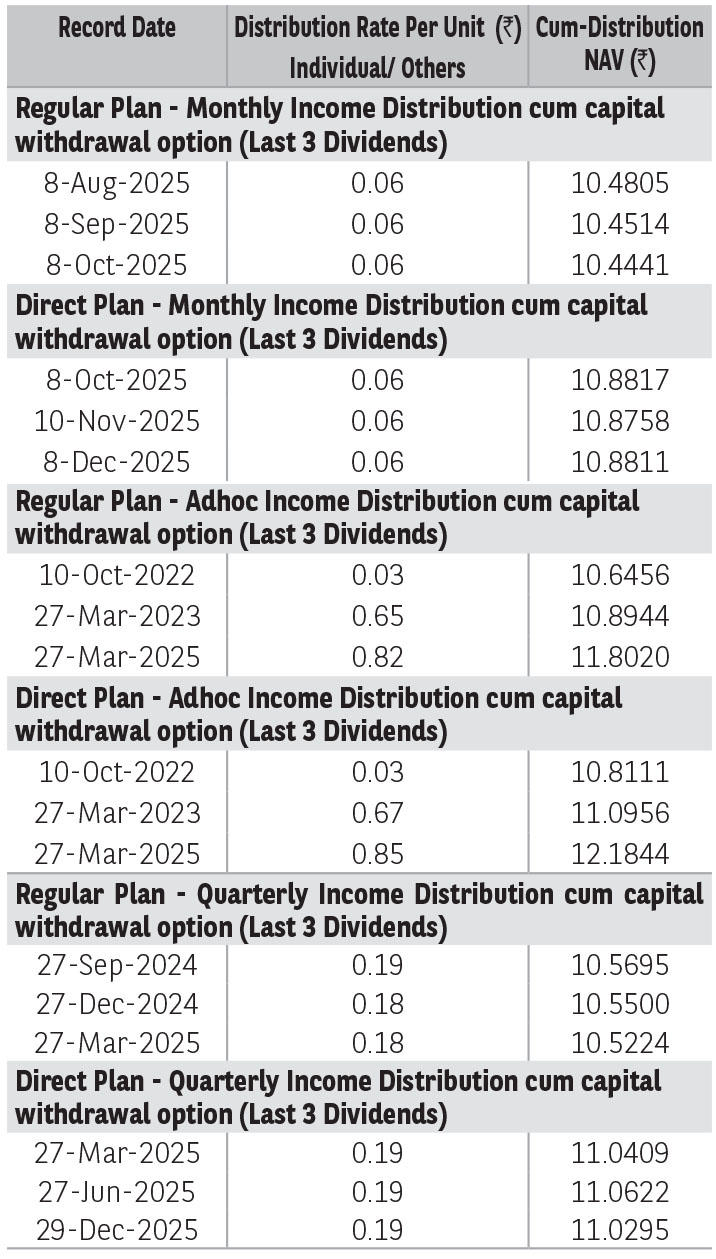 Regular Plan - Monthly IDCW Option : ₹ 10.5223