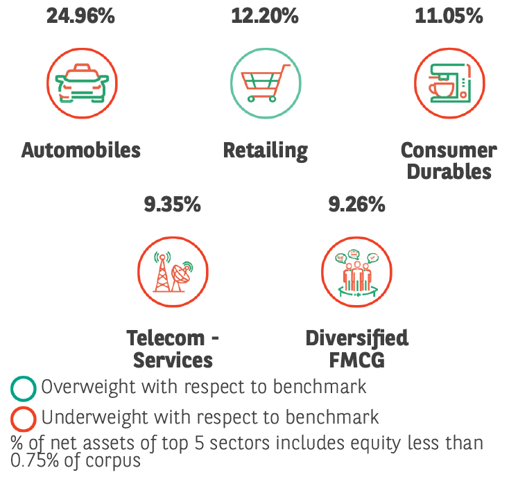 ➤ Investment primarily in equity and equity related securities and the rest in debt securities & money market instruments to generate capital appreciation and provide long-term growth opportunities by investing in companies expected to benefit by providing products and services to the growing consumption needs of Indian consumers.