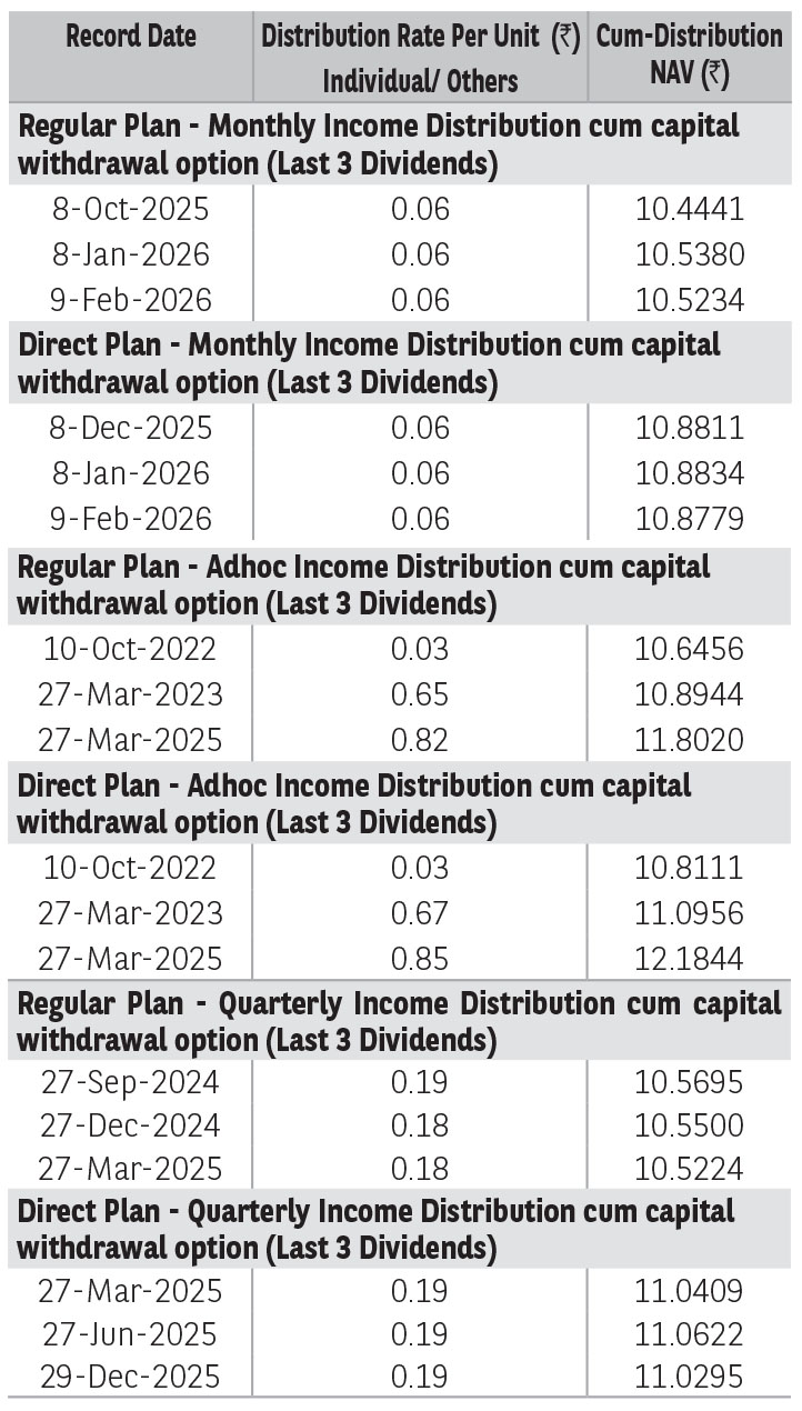 Regular Plan - Adhoc IDCW Option : ₹ 11.6009