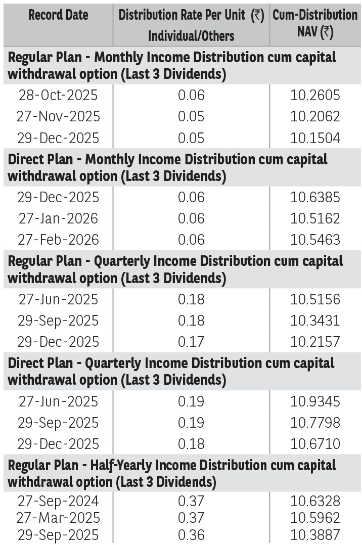 | Regular Plan - Half Yearly IDCW Option | :₹ 10.0908 |