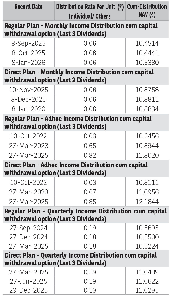 Regular Plan - Adhoc IDCW Option : ₹ 11.5535
