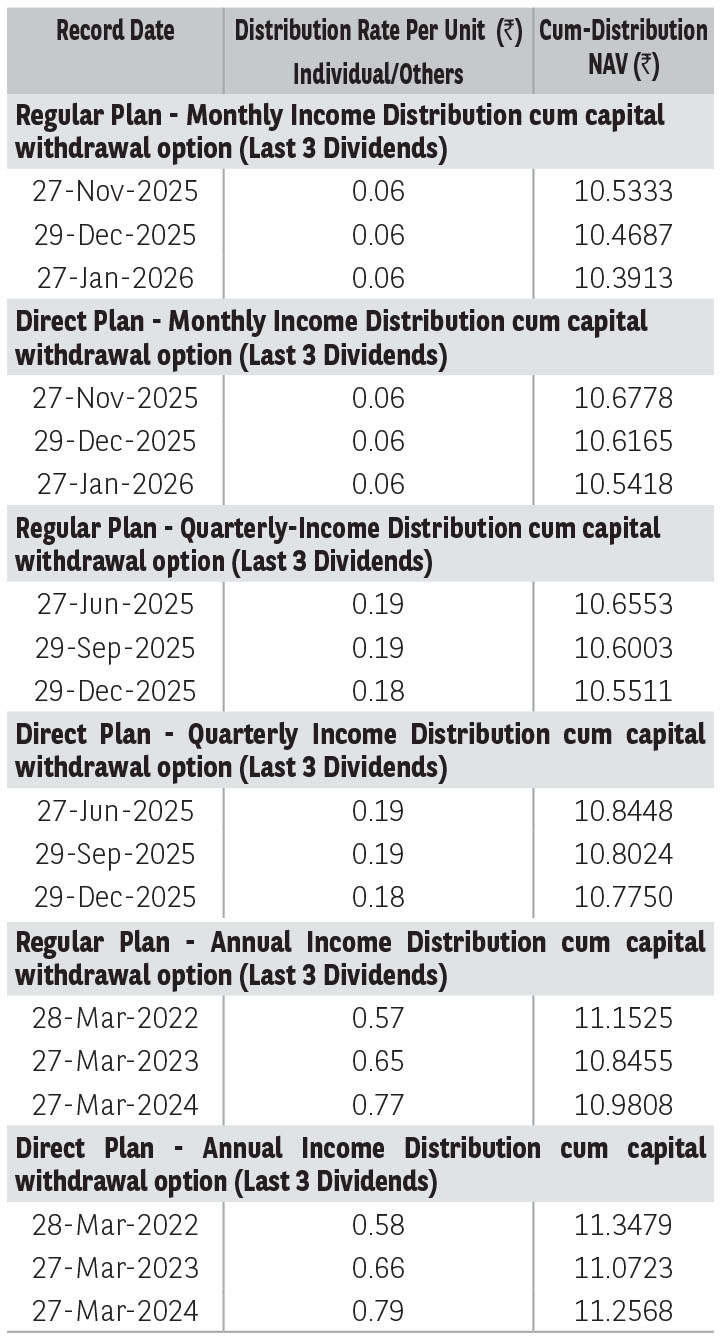 NAV Details (As on January 30, 2026)| Regular Plan - Quarterly IDCW Option | : ₹ 10.3641 |