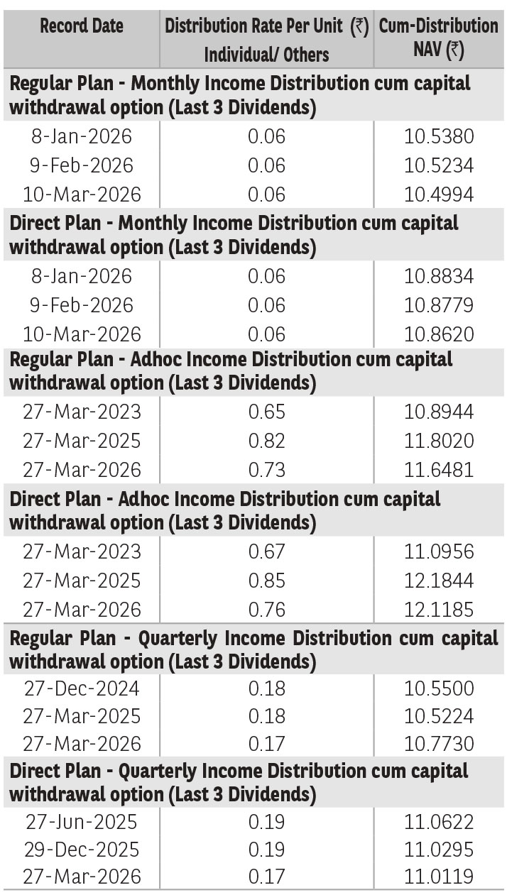 Regular Plan - Adhoc IDCW Option : ₹ 10.9234