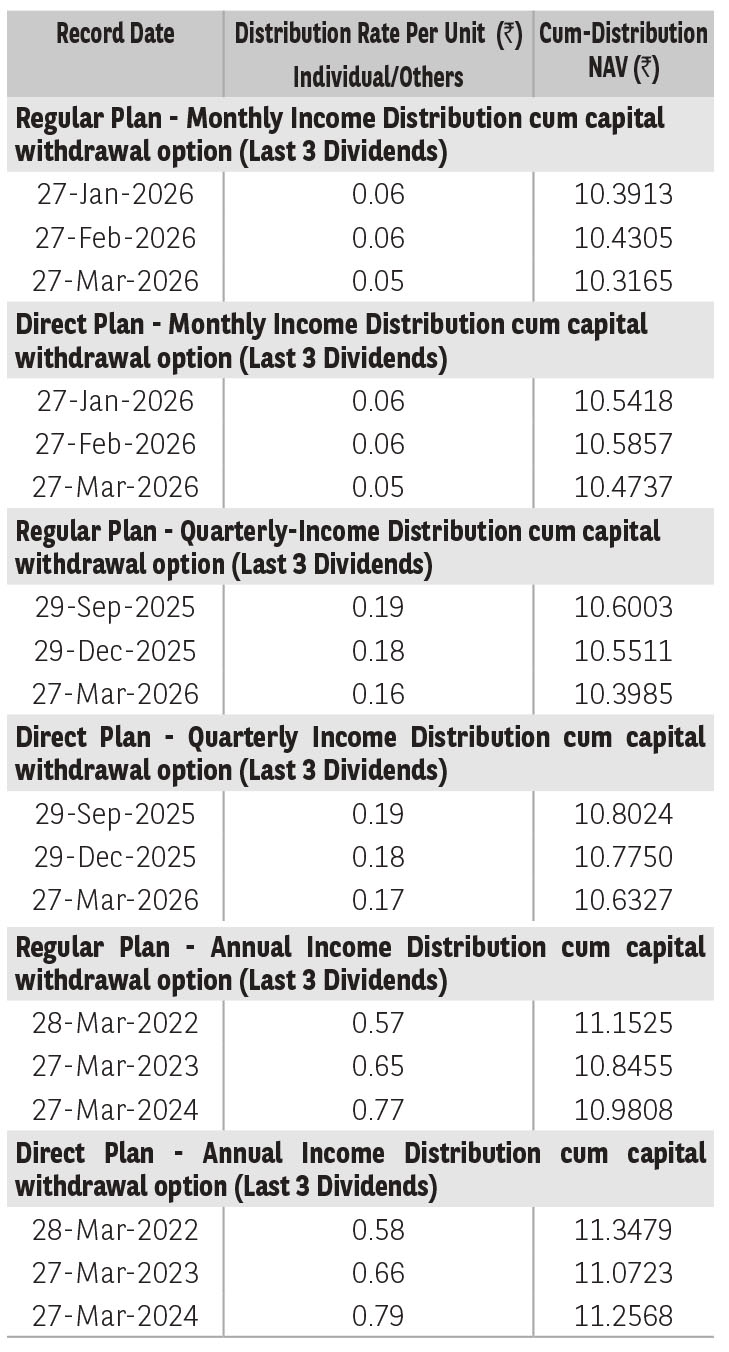 NAV Details (As on March 31, 2026)| Regular Plan - Quarterly IDCW Option | :₹ 10.2626 |