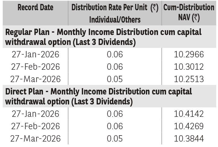 NAV Details ( As on March 31, 2026 )| Regular Plan - Weekly IDCW Option | :₹ 10.0205 |