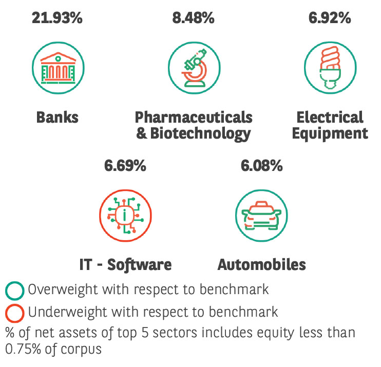 ➤ Investment predominantly in equity & equity related securities, including equity derivatives in Indian markets with focus on riding business cycles through dynamic allocation between various sectors & stocks at different stages of business cycles in the economy.