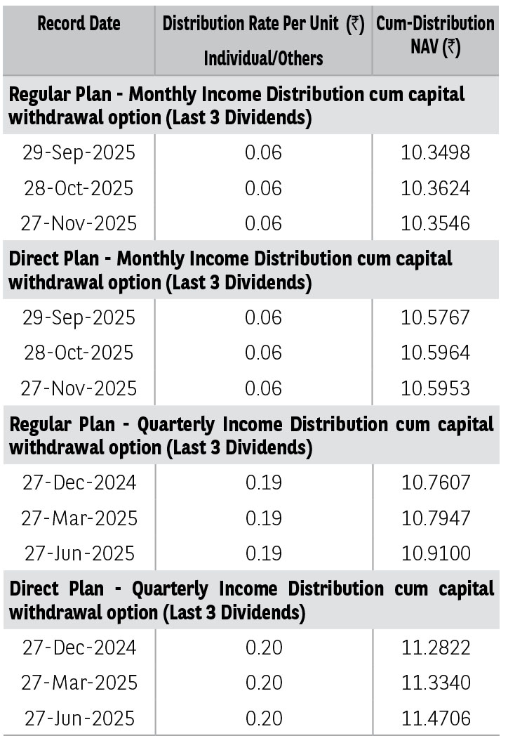 NAV Details (As on November 28, 2025)| Regular Plan - Quarterly IDCW Option | : ₹10.7861 |