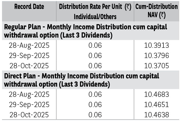 | Regular Plan - Monthly IDCW Option | : ₹ 10.3138 |
