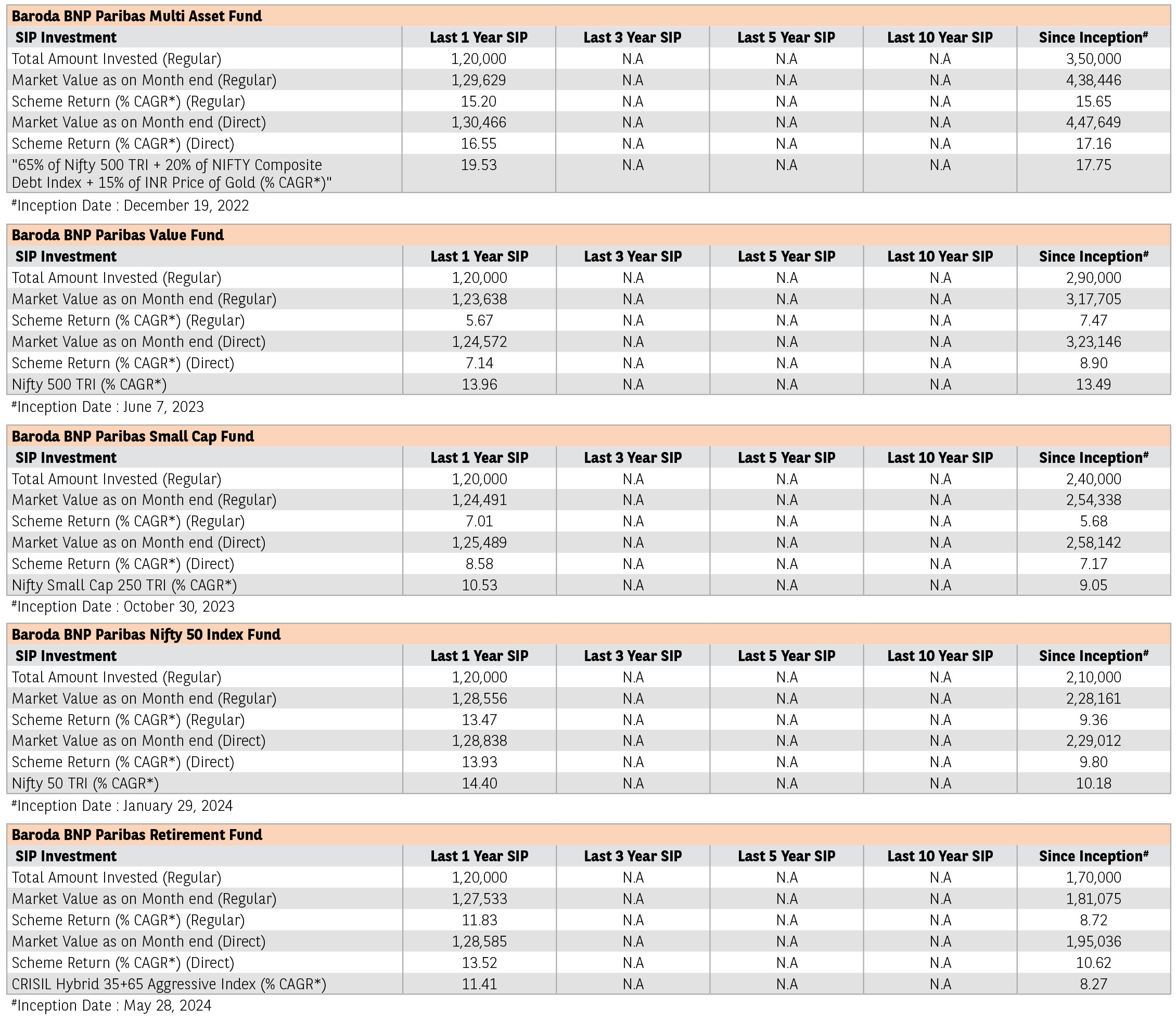 Where returns are not available for a particular period, they have not been shown.