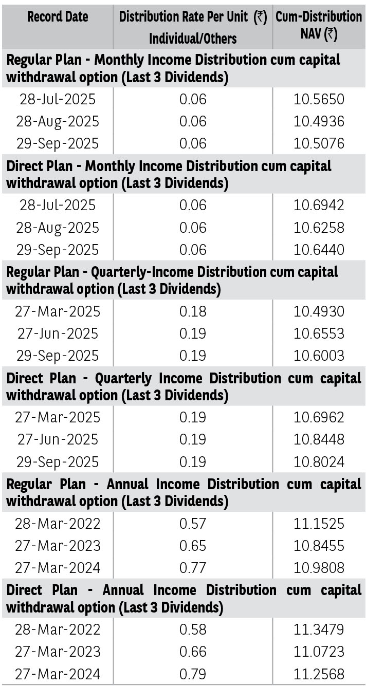 Regular Plan - Monthly IDCW Option | : ₹ 10.4498 |