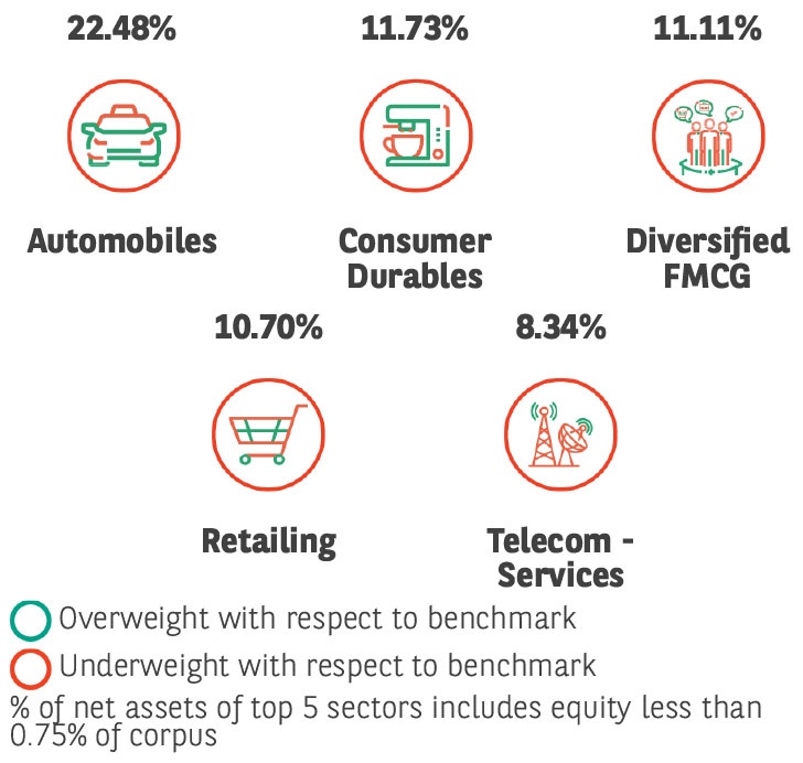 ➤ Investment primarily in equity and equity related securities and the rest in debt securities & money market instruments to generate capital appreciation and provide long-term growth opportunities by investing in companies expected to benefit by providing products and services to the growing consumption needs of Indian consumers.