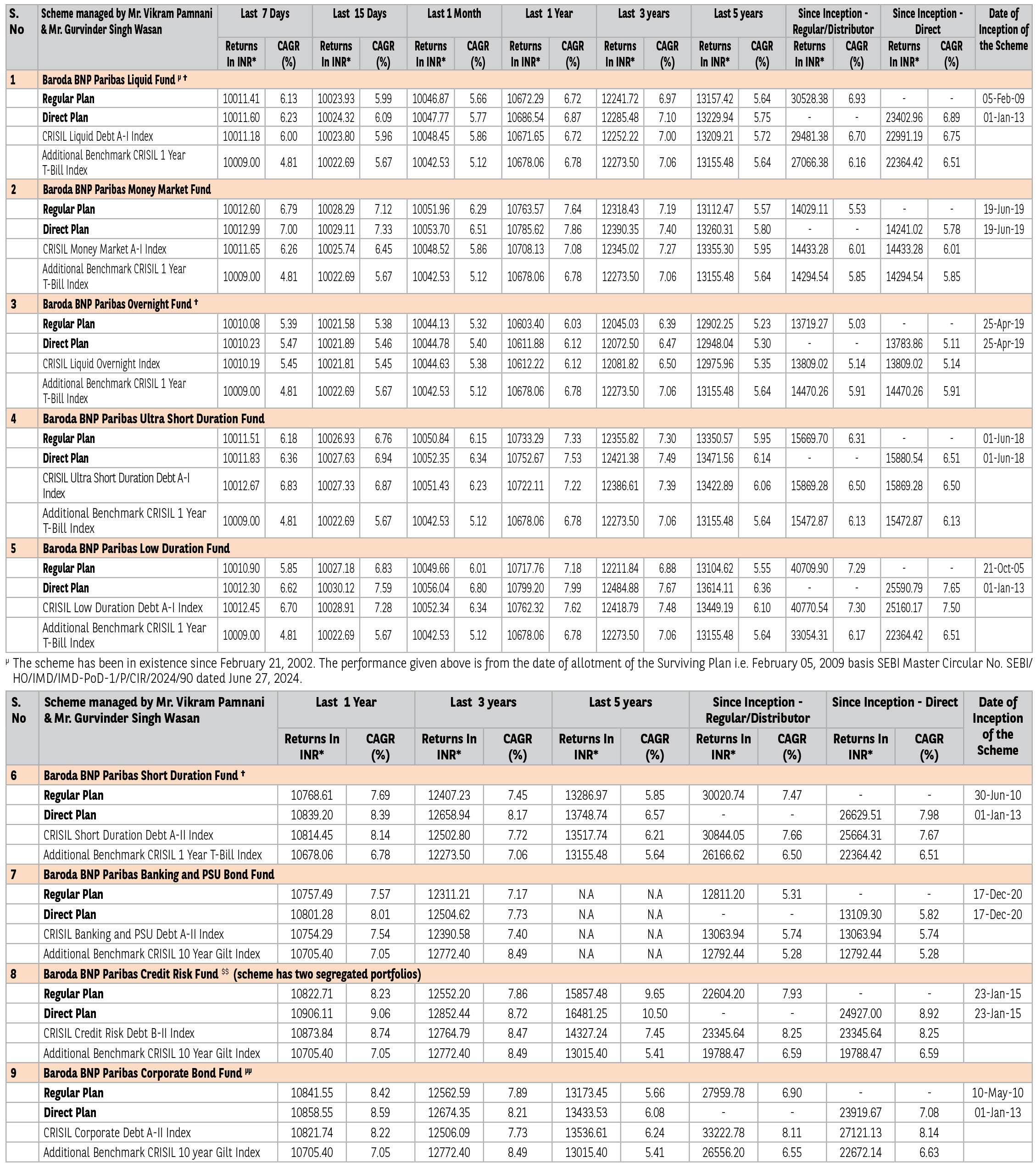 μμ The inception date of Baroda BNP Paribas Corporate Bond Fund is November 8, 2008. However, since there was no continuous NAV history available for this plan prior to May 10, 2010, the point to point return from since inception may not be the true